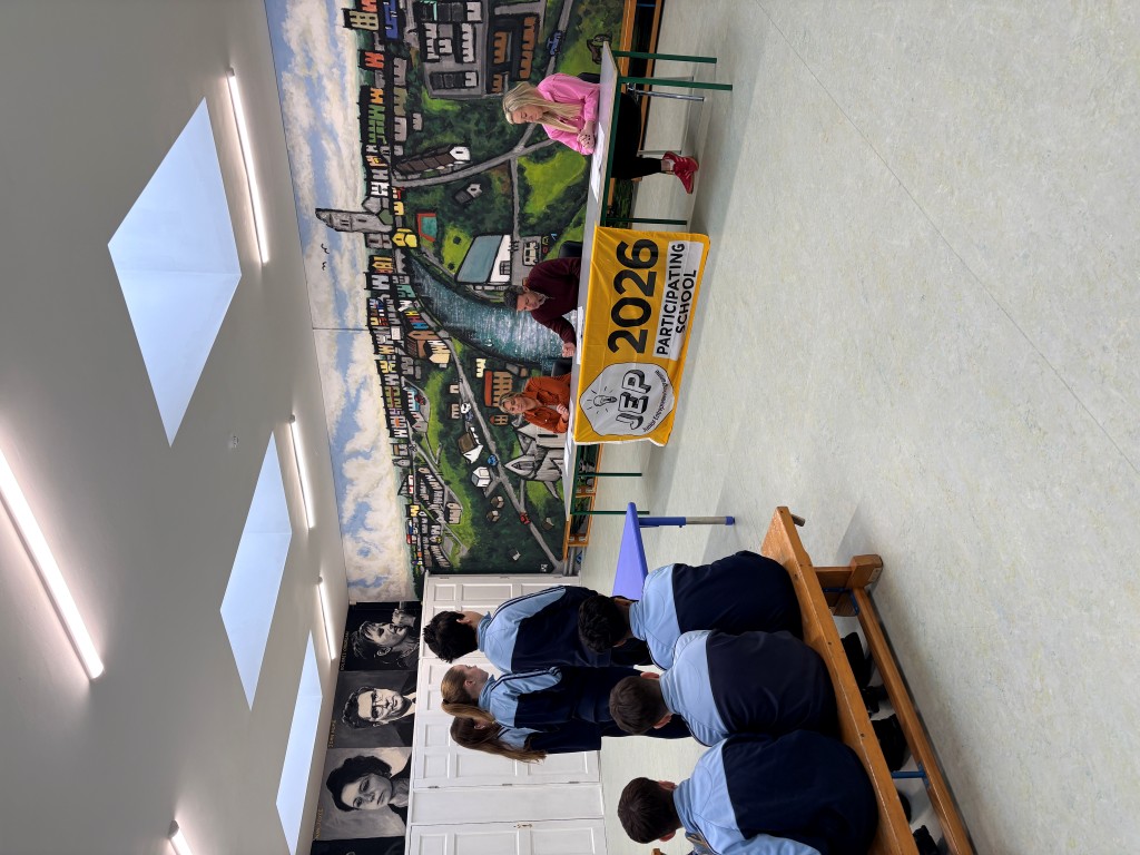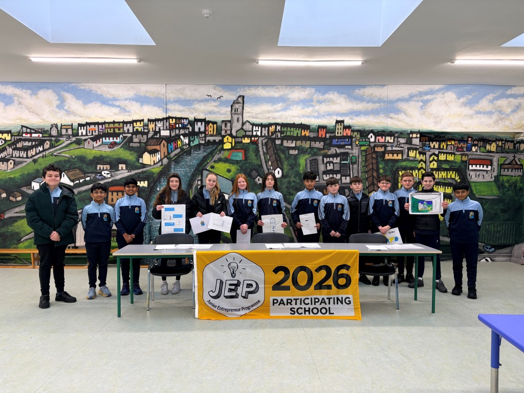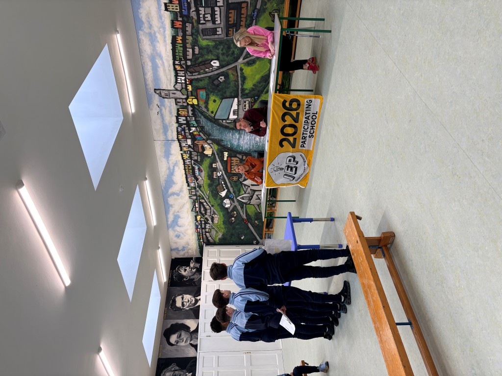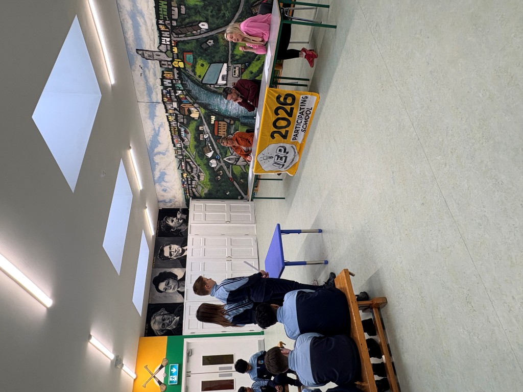 6th class presented their JEP ideas: a reusable shopping bag, a branded water bottle, a school cook book and GAA shorts and hat to our own 'Dragons Den'.