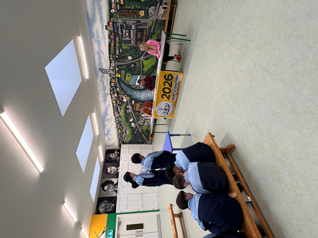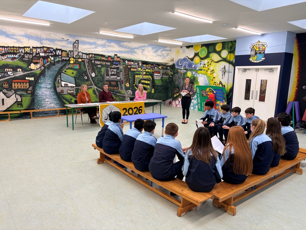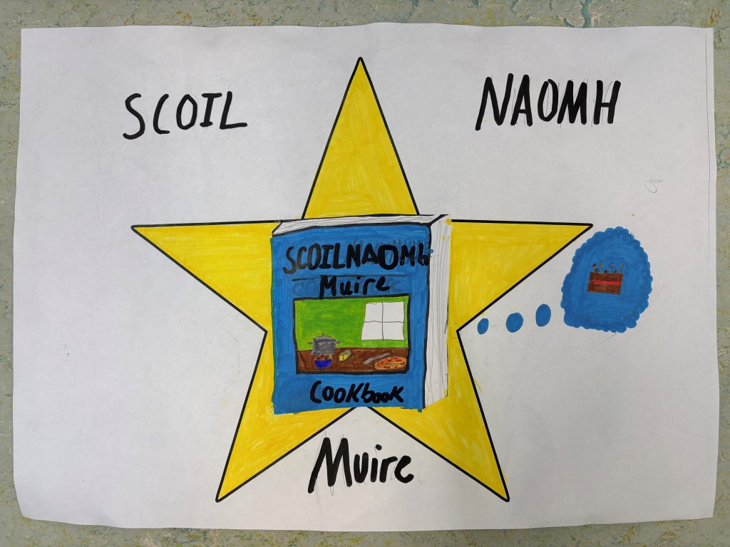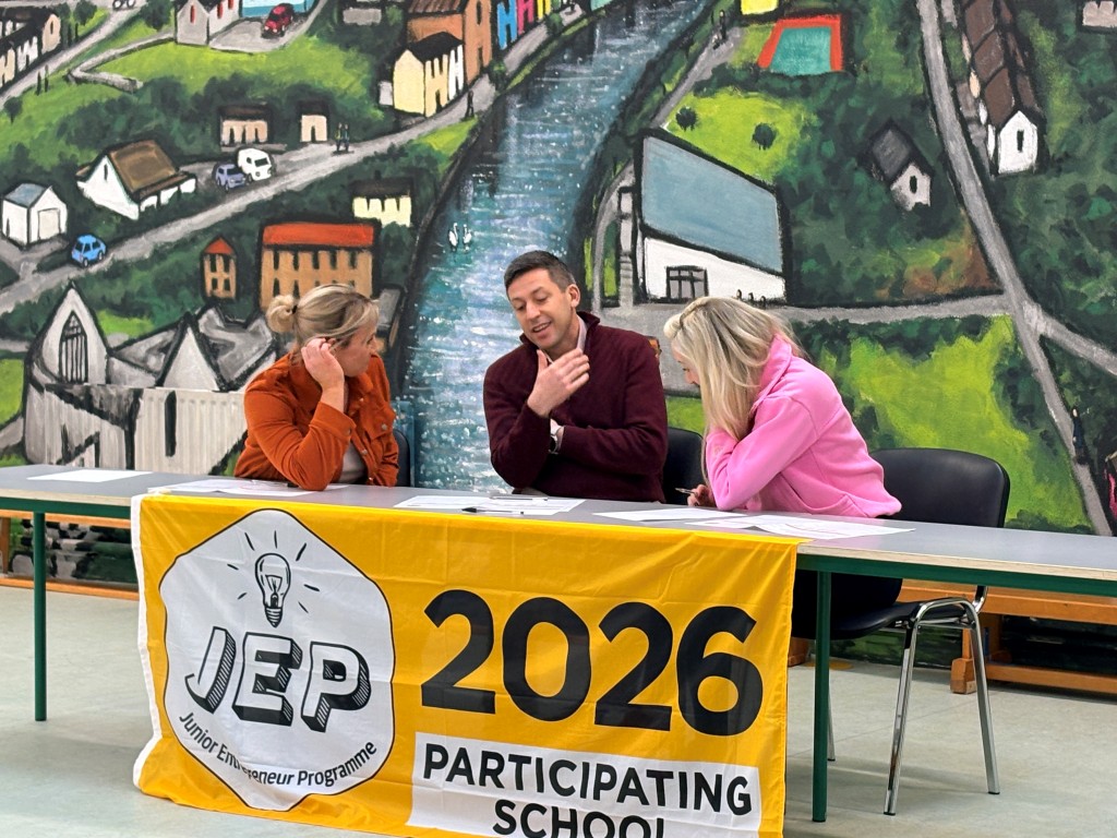 6th class presented their JEP ideas: a reusable shopping bag, a branded water bottle, a school cook book and GAA shorts and hat to our own 'Dragons Den'.