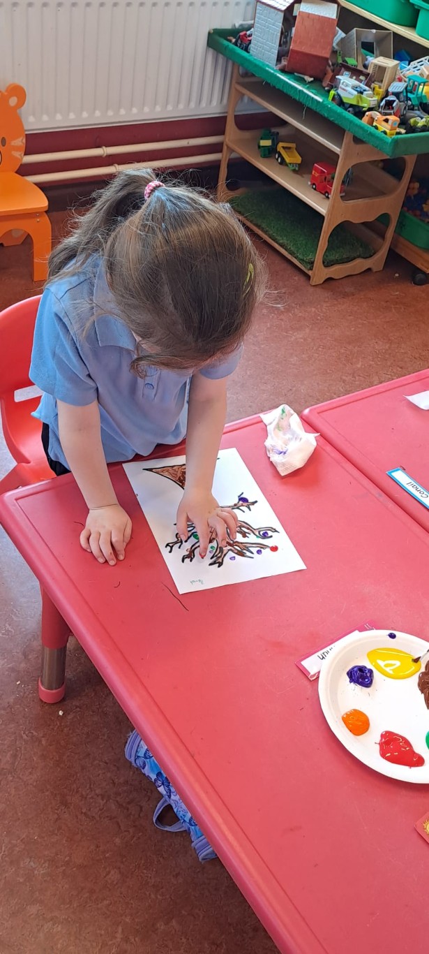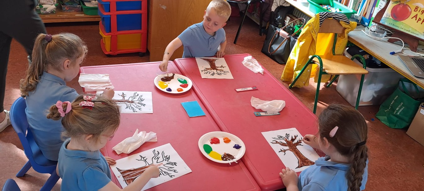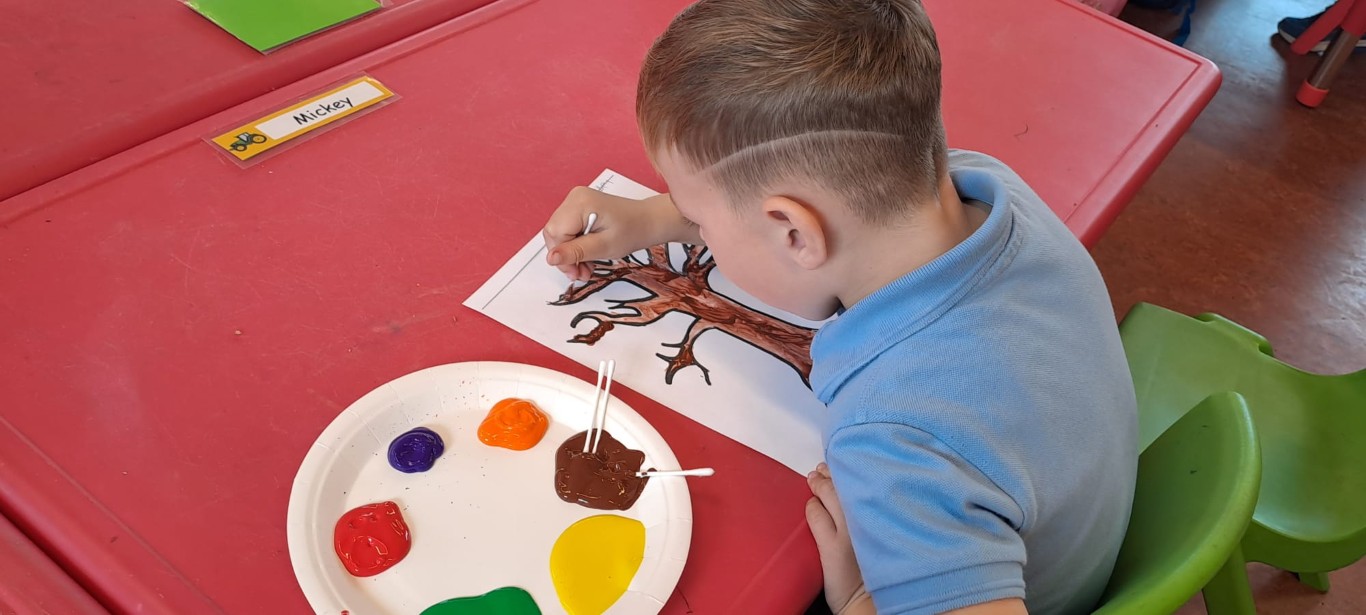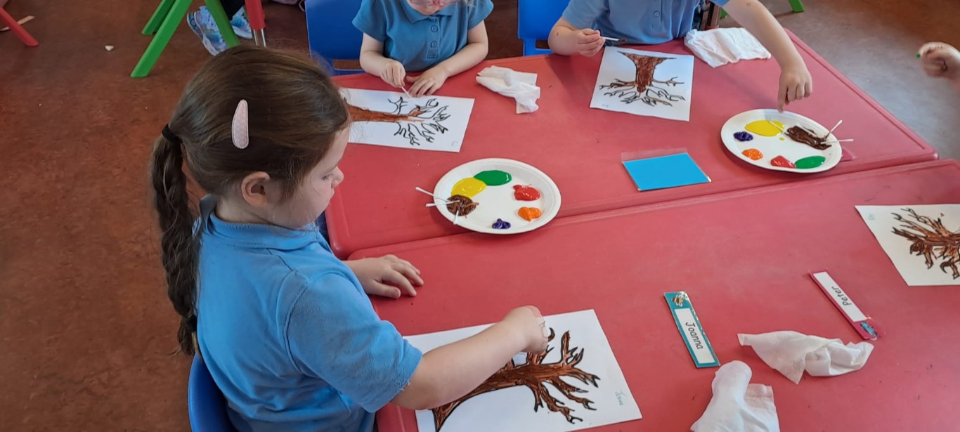 Junior Infants were learning about Autumn trees and what happens to the leaves as the season passes and also did some lovely finger painting