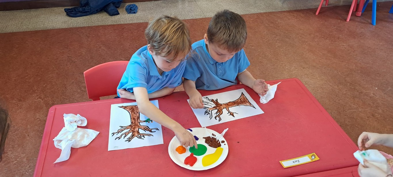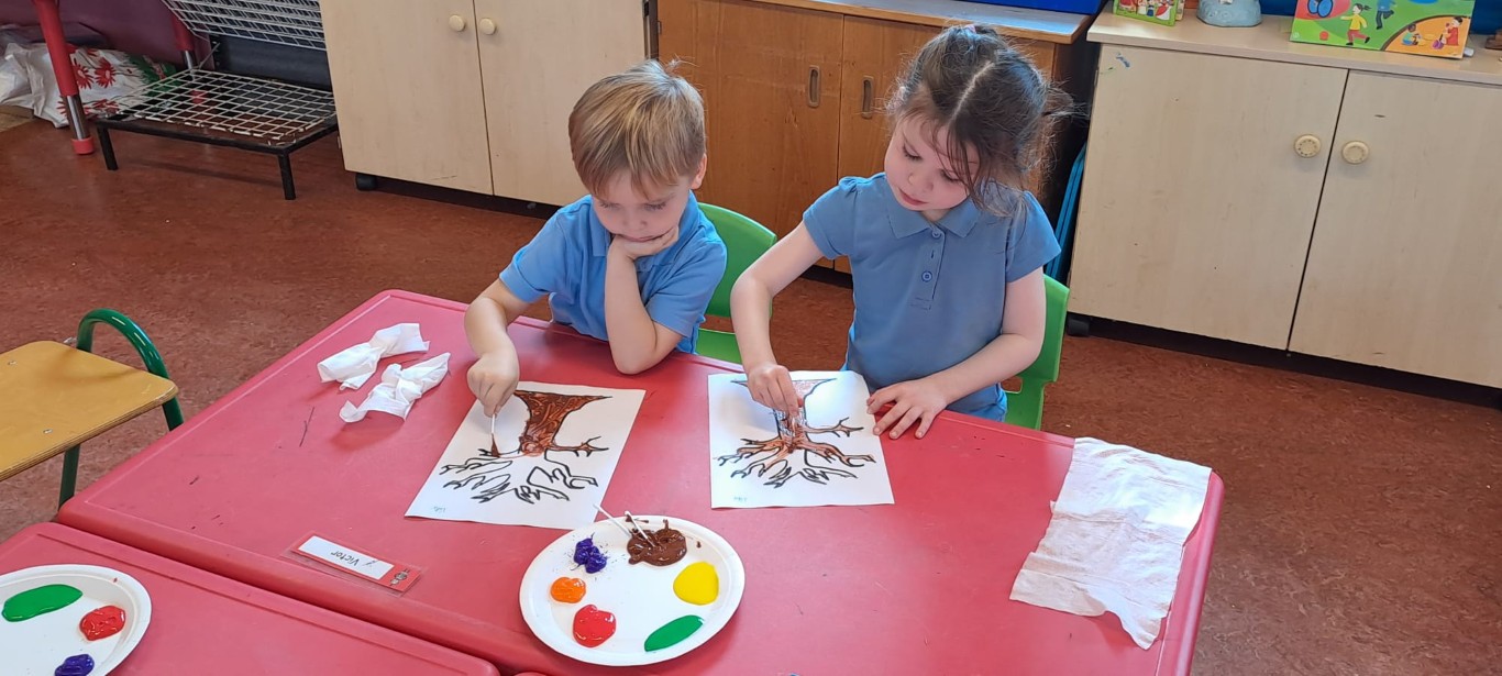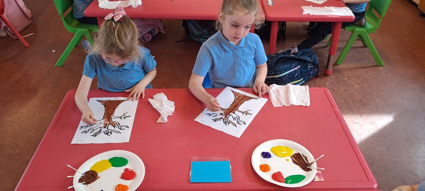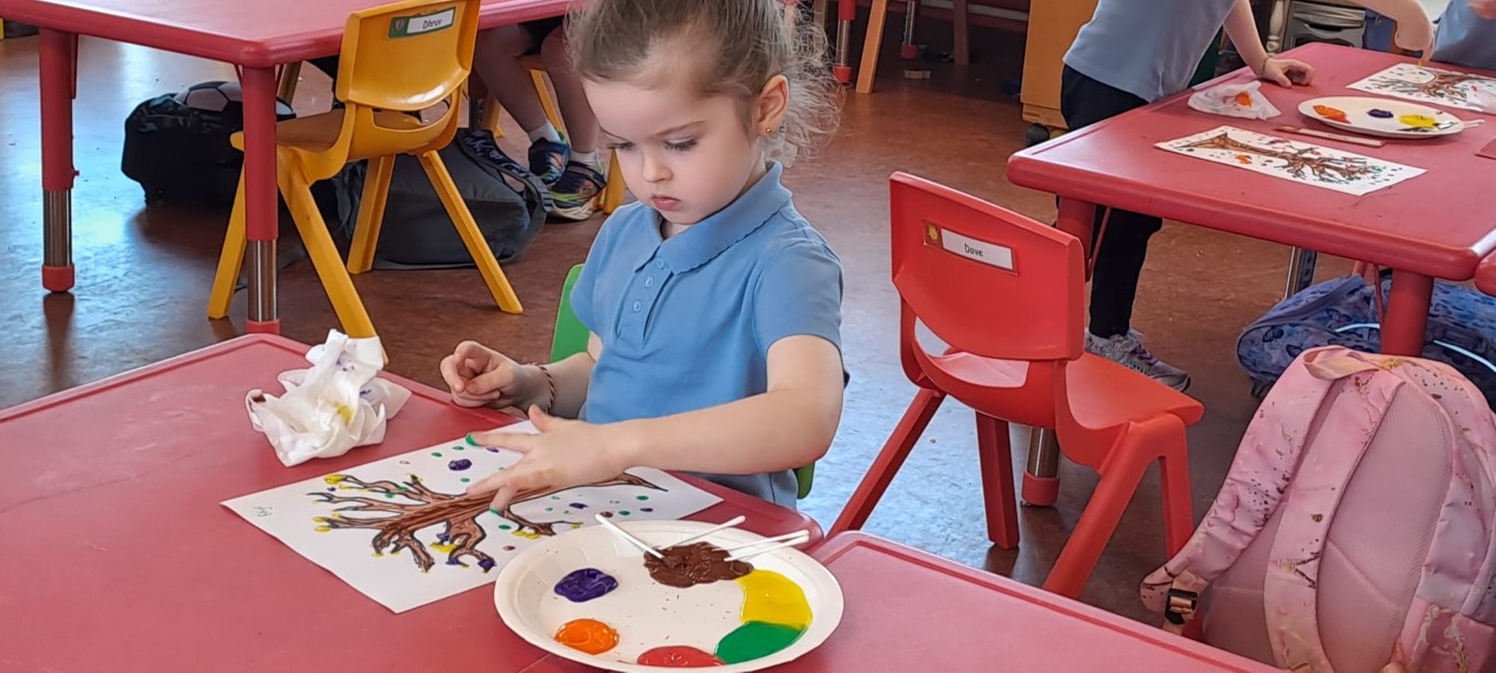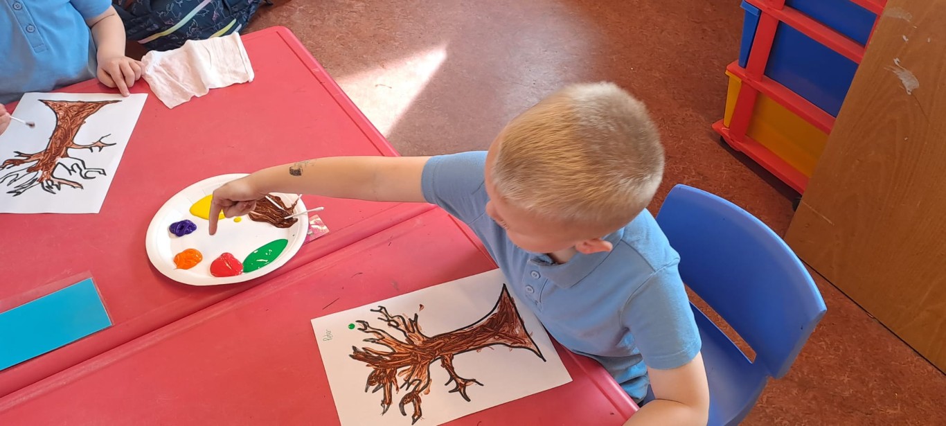 Junior Infants were learning about Autumn trees and what happens to the leaves as the season passes and also did some lovely finger painting