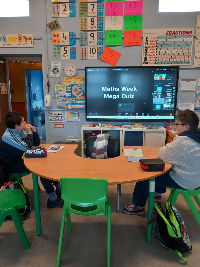 We had many activities from class quiz time to maths trails take place to celebrate Maths Week. We wrapped up Maths week with a maths quiz for all classes.