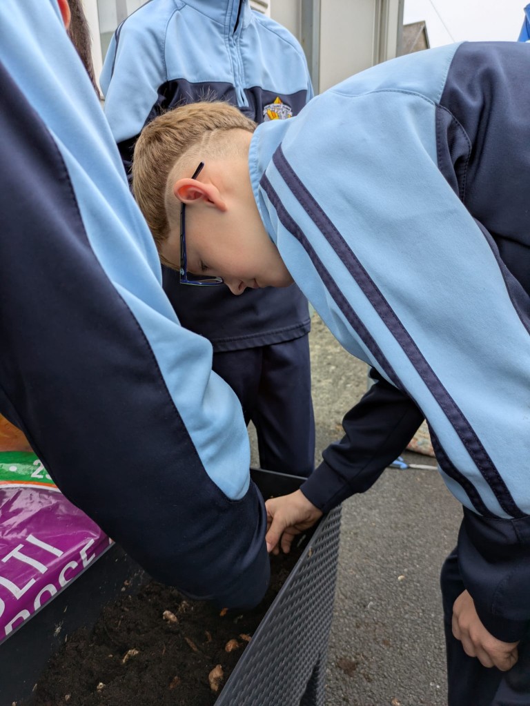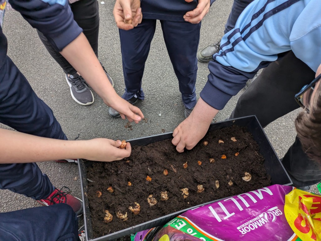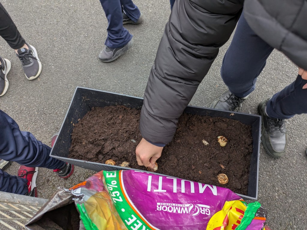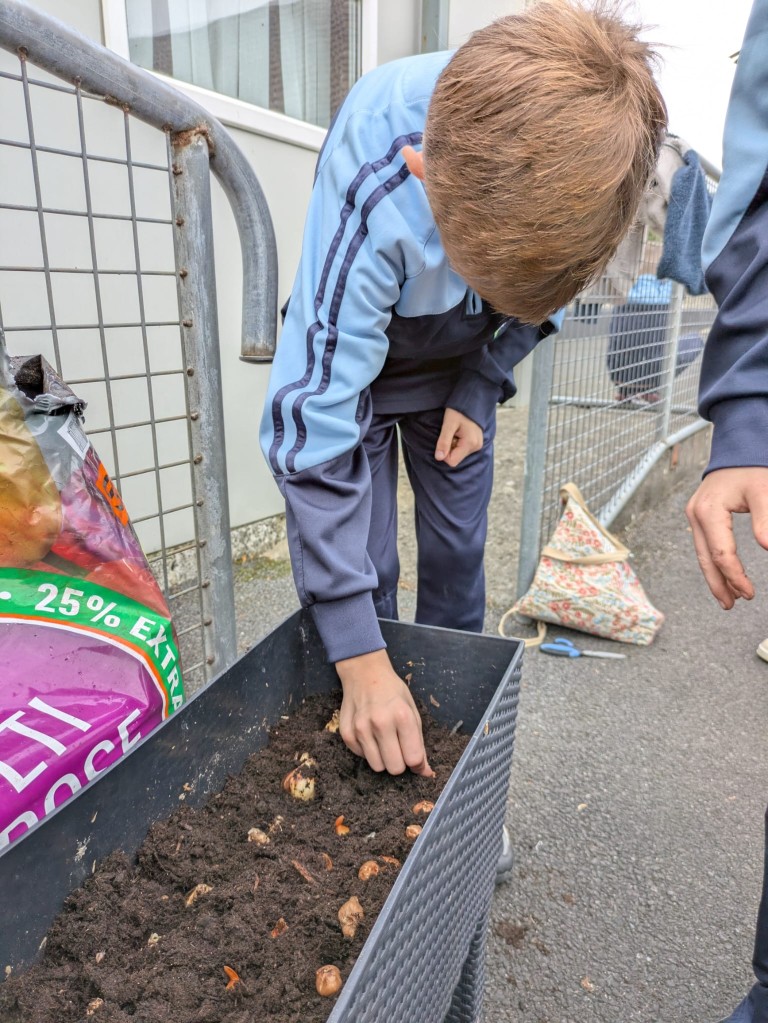 The students in Ms. Hayes' class have been busy planting bulbs and seeds before Winter arrives.