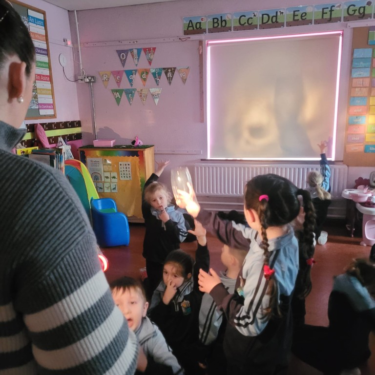 Senior Infants have been learning about light and shadows in Science and had fun using torches and creating shadows.